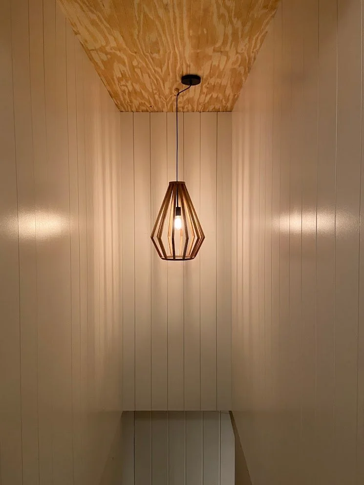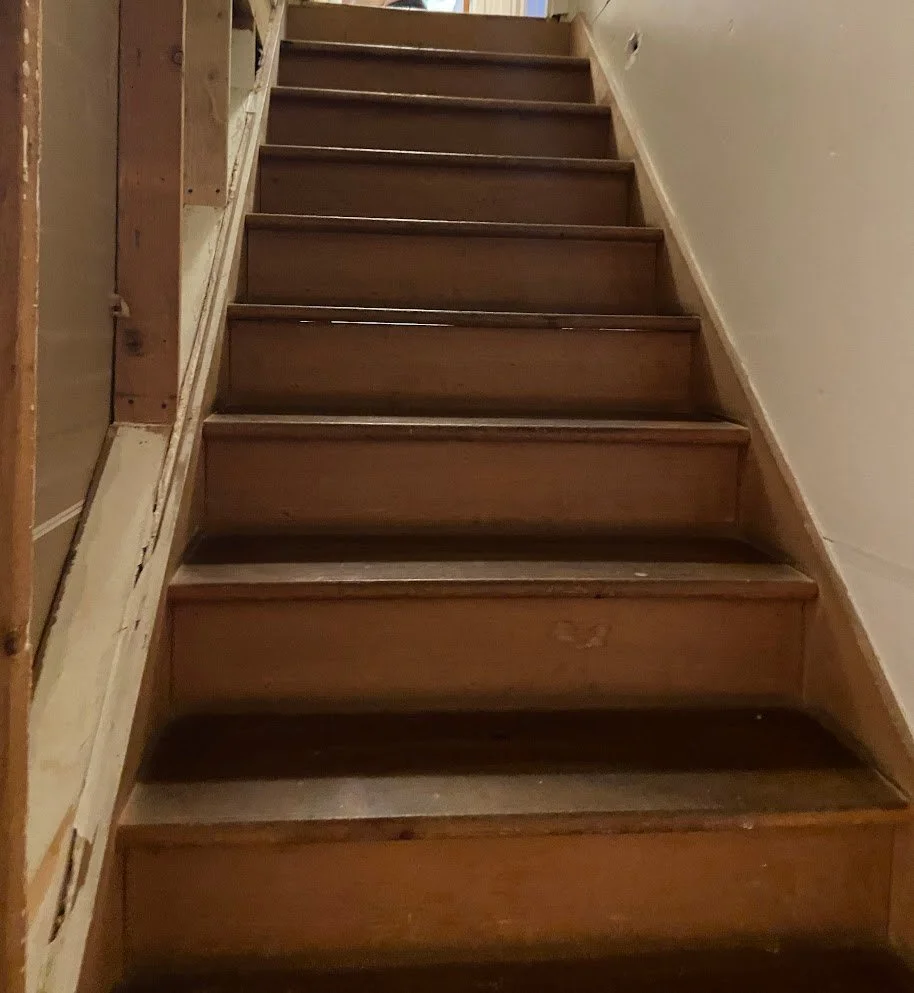 We removed the carpet, painted and added a runner to the stairs, added shiplap to the walls and installed lighting. Used reclaimed pine for the handrail (not pictured).